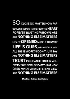 Bilder Kunstwerke Ungerahmter Druck Metallica Nothing Else Matters Lyrics Unframed Print Handmade Produkte Agb Lv from images-na.ssl-images-amazon.com Lyrics to 'nothing else matters' by metallica: So close, no matter how far couldn't be much more from the heart forever trusting who we are and nothing else matters never opened myself this way life is ours, we live it our way all these words i don't just say and nothing else matters trust i seek and i find in you every day for us something new open mind for a different view and. So close, no matter how far couldn't be much more from the heart forever trusting who we are and nothing else matters never opened myself this way life is ours, we live it our way all these words, i don't just say and nothing else matters trust i seek and i find in you every. En niets anders doet er iets toe. Couldn′t be much more from the heart. Het leven is van ons, we leven het op onze manier. Trust i seek and i find in you every day for us something new open mind for a different view and nothing else matters Forever trusting who we are.